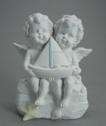 Dois Anjos Com Um Veleiro 11,7*6,1*14,6 cms (minimo de 4)
