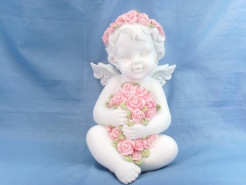 Anjo Com Flor Rosa 10,8* 14,5 cms (minimo de 4)