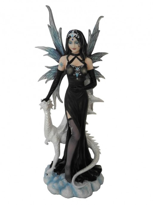 Estatueta De Fada Negra Com Dragão Branco 18*41 cm (minimo de 1)