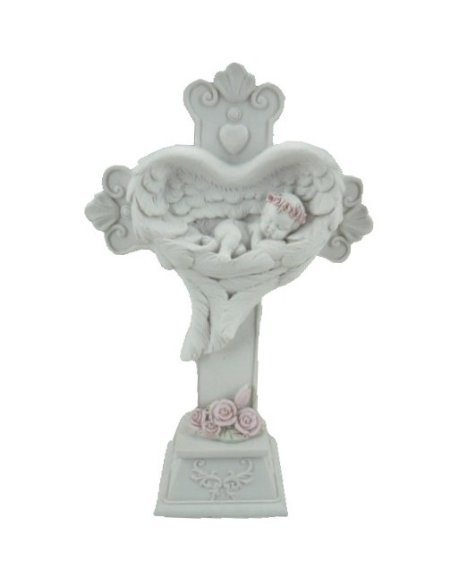 Sujet bébé dans ailes sur croix 12.8*12.2*10.5 cms (Minimo 4)